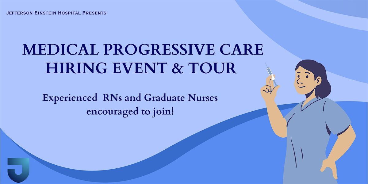 Jefferson Einstein Hospital is hosting a unit tour and hiring event for our Medical Progressive Care Unit! . We will discuss what a typical day looks like, our residency program and different programs we have to offer to continue your education. Once you've completed the tour you will have the option to do a in person interview with our Nurse Managers right then! We encourage you to join us and see if our Jefferson Einstein team is the right fit for you.