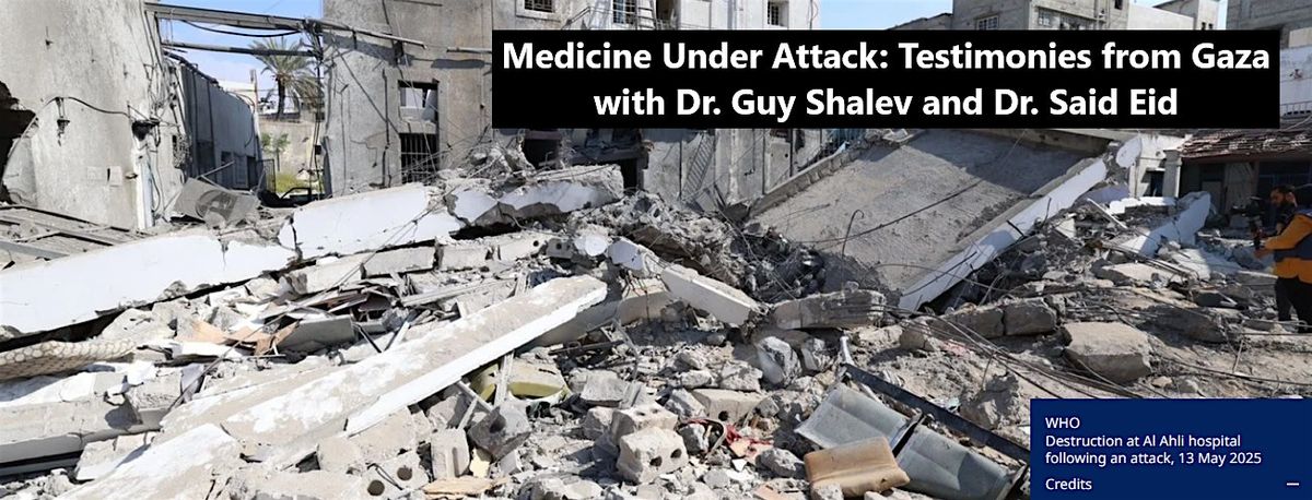 Dr. Shalev will speak about Israel’s destruction of Gaza’s healthcare system, providing an overall analysis of the systematic targeting of medical facilities, personnel, aid, and care. He will explain how these attacks continue to inflict death and suffering even after the announced so-called ceasefire, with lasting consequences for Gazans’ survival and recovery. He will also examine the ethical failures of the Israeli medical community, the responsibilities of the international medical community, and the urgent actions required now, including coordinated advocacy and concrete mechanisms for sustained professional and international pressure.