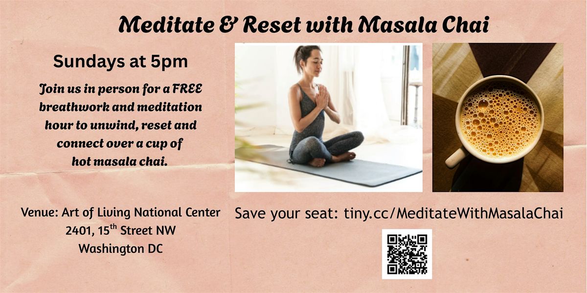 Enjoy a hot cup of masala chai on Sundays at 5pm at the Art of Living DC Center. Meditate and Reset before stimulating with masala chai.About this Event