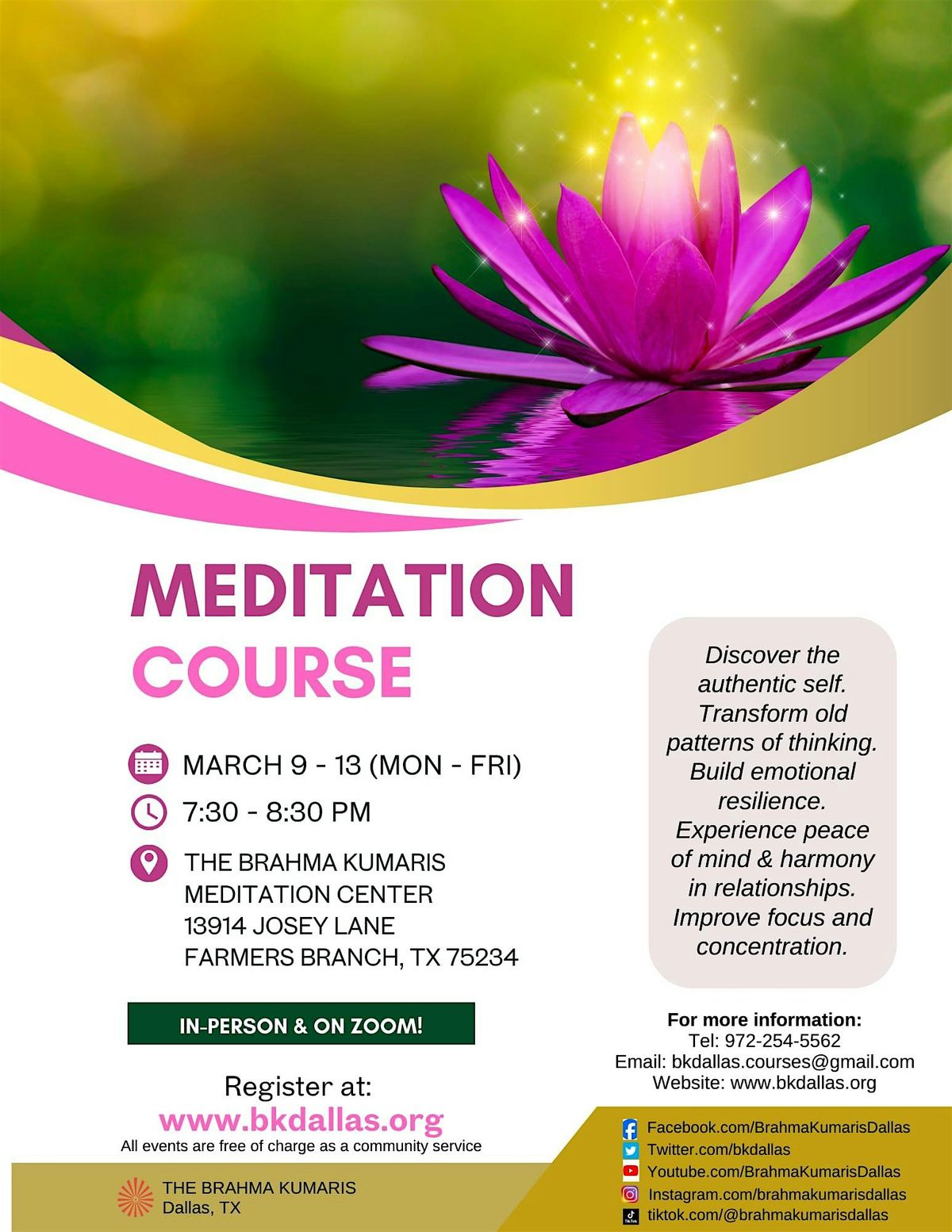 Join us for a free 5-day Meditation Course designed to help you create lasting inner peace and emotional strength. Whether you are new to meditation or looking to deepen your practice, this course offers simple and practical tools you can apply immediately in daily life.
