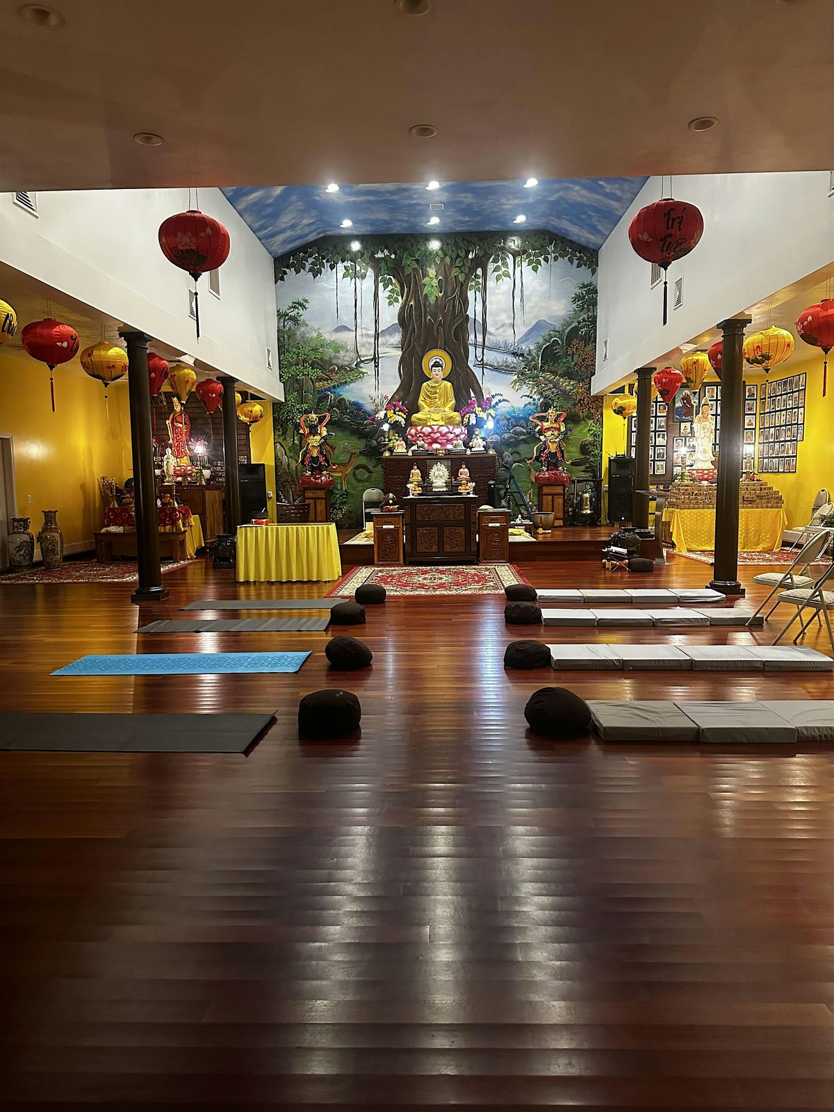 Join us for a calming and restorative evening of mindfulness practice in the peaceful setting of a local Buddhist temple.