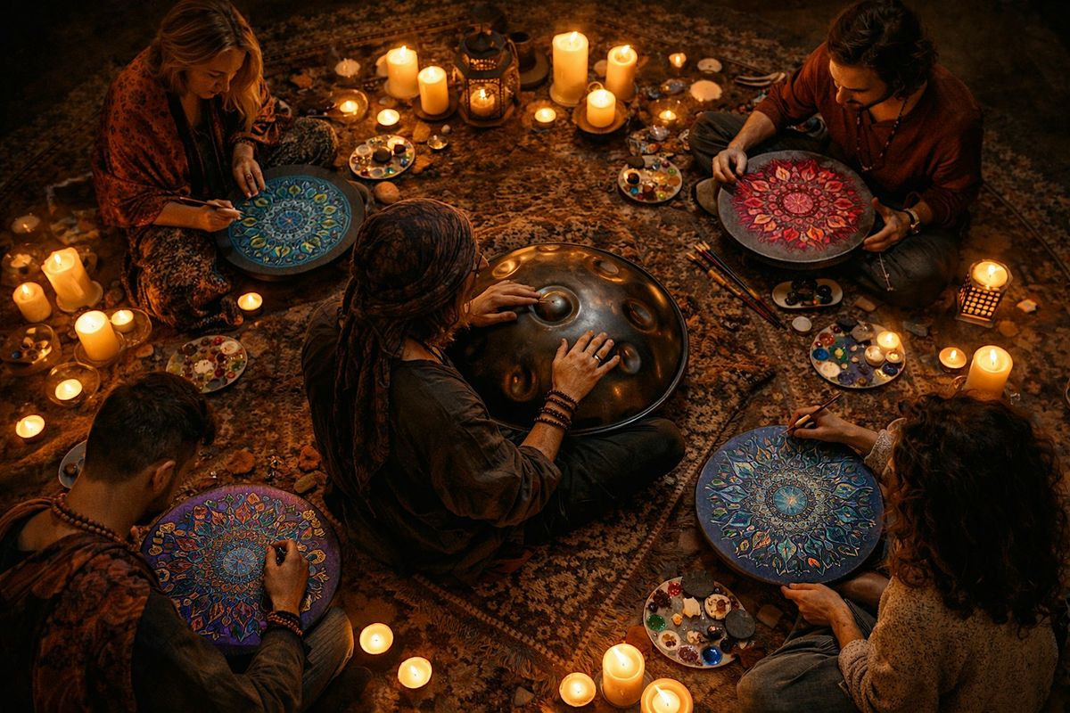 A 90-minute immersive experience of live handpan music, mindful mandala painting, and deep relaxation in an intimate candlelit setting.