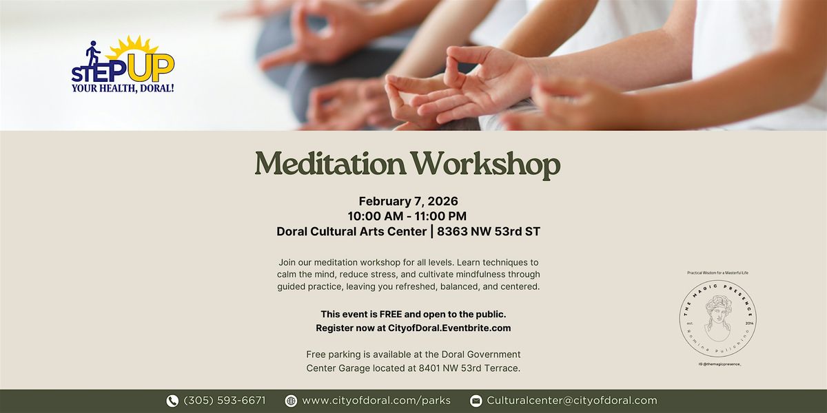 Join our meditation workshop for all levels. Learn techniques to calm the mind, reduce stress, and cultivate mindfulness through guided practice, leaving you refreshed, balanced, and centered.
