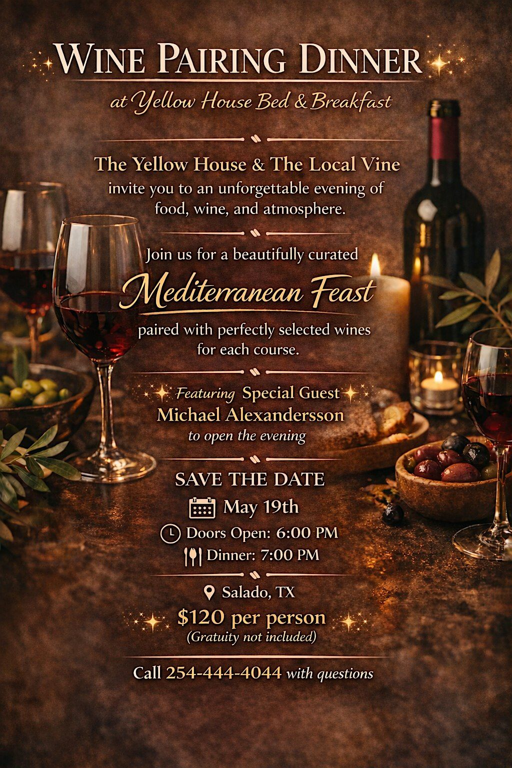 Yellowhouse B&B and The Local Vine are inviting you for a Mediterranean Wine Pairing Dinner!