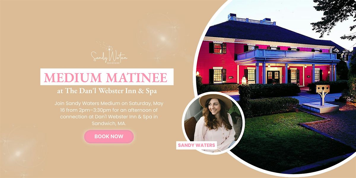 Join Sandy Waters Medium on Saturday, May 16 from 2pm–3:30pm for a Mediumship Matinee at the Dan'l Webster Inn & Spa in Sandwich, MA.About this Event