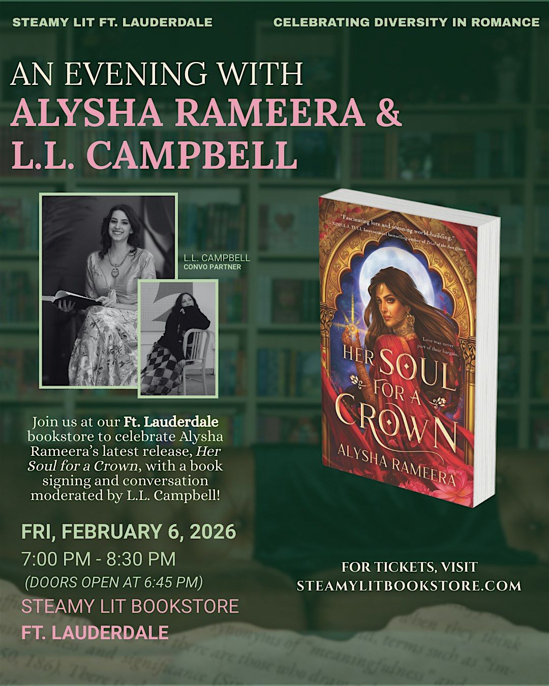 Join us for a special evening celebrating the debut release of Her Soul for a Crown by Alysha Remeera. The event will take place on Friday, February 6, from 7:00–8:30 p.m. at Steamy Lit Bookstore – Fort Lauderdale.