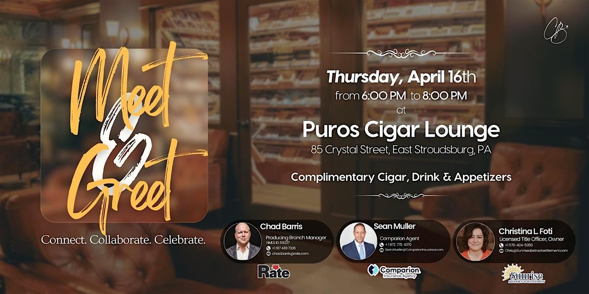 Join us on Thursday, April 16 th at Puros Cigar Lounge in East Stroudsburg, PA for an evening of networking, great conversations, and meaningful connections. Set in the upscale ambiance of Puros—complete with premium cocktails, comfortable seating. This Meet & Greet is the perfect opportunity to expand your circle in a relaxed, welcoming environment. Whether you’re looking to grow your business or simply connect with like-minded professionals, this night promises to blend socializing, networking, and good company in style.