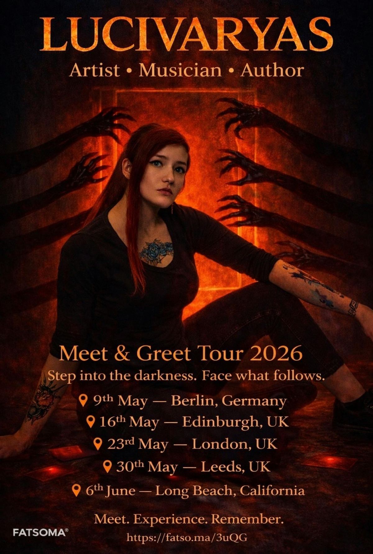 Step into the world of Lucivaryas for an intimate and unforgettable meet & greet experience. Known for blending haunting visuals with raw creative expression, Lucivaryas invites you beyond the screen and into a space where art, music, and storytelling collide.This exclusive event offers fans the chance to meet Lucivaryas in person, connect on a deeper level, and experience the atmosphere behind the artistry. Expect a dark, immersive setting inspired by her signature aesthetic, where every moment feels personal, intense, and unforgettable.