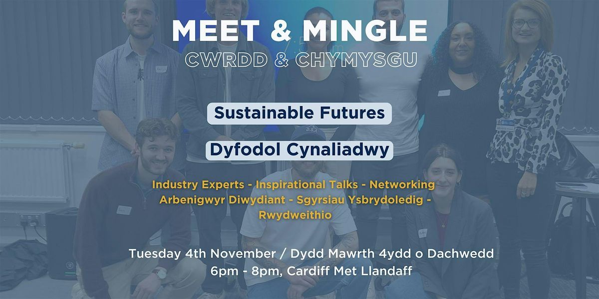 Dewch draw i'n digwyddiad Cwrdd a Chymysgu wrth i ni agor sgwrs ar thema "Dyfodol Cynaliadwy". Byddwn yn clywed gan sylfaenwyr sy'n meddwl ymlaen ac sydd ar genhadaeth i ymgorffori cynaliadwyedd amgylcheddol yn eu harferion busnes, wrth addysgu a chefnogi'r cyhoedd yn gyffredinol ynghylch adeiladu ffyrdd o fyw mwy cynaliadwy a moesegol.