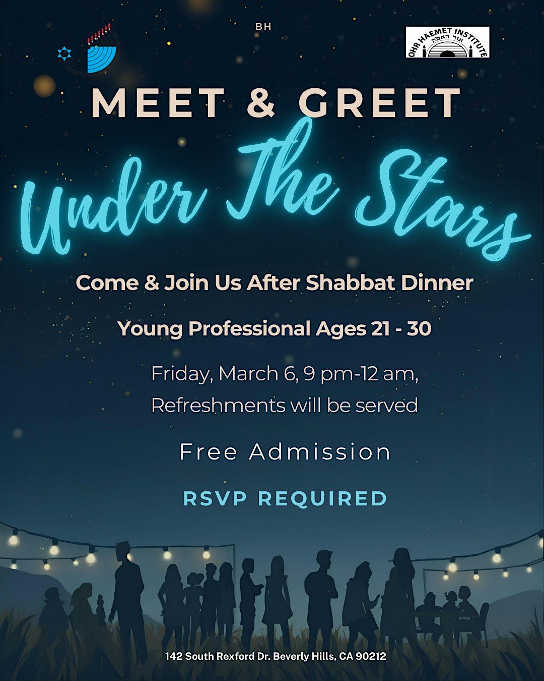 Meet & Greet Under The Stars Come & Join Us After Your Shabbat Dinner