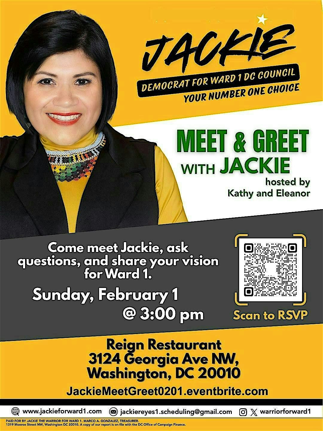 Join Jackie Reyes Yanes, candidate for DC Council representing Ward 1, for an evening of conversation, connection, and community.