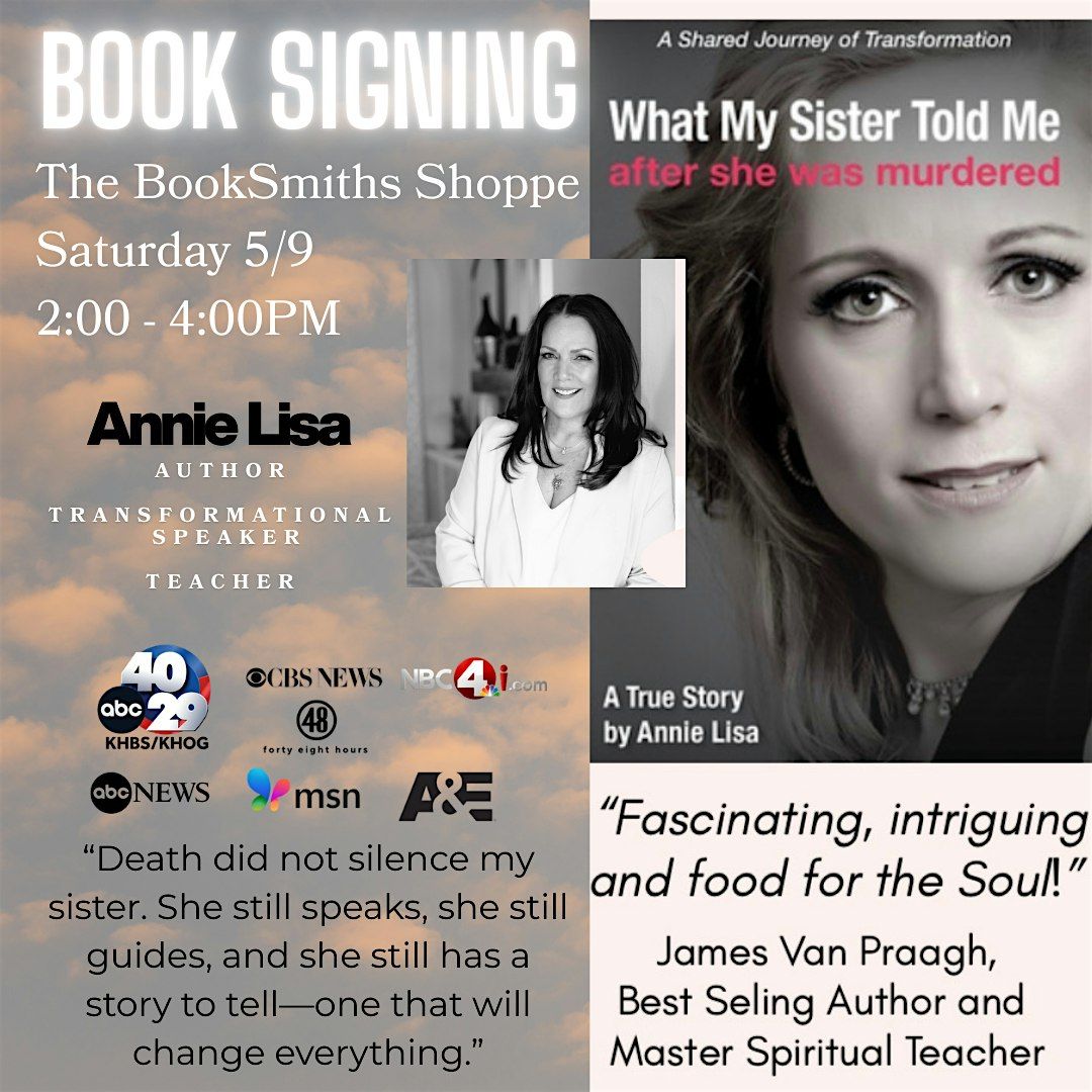 Meet Author Annie Lisa on Saturday 5/9 from 2-4PM - "What My Sister Told Me after She Was Murdered: A Shared Journey of Transformation"