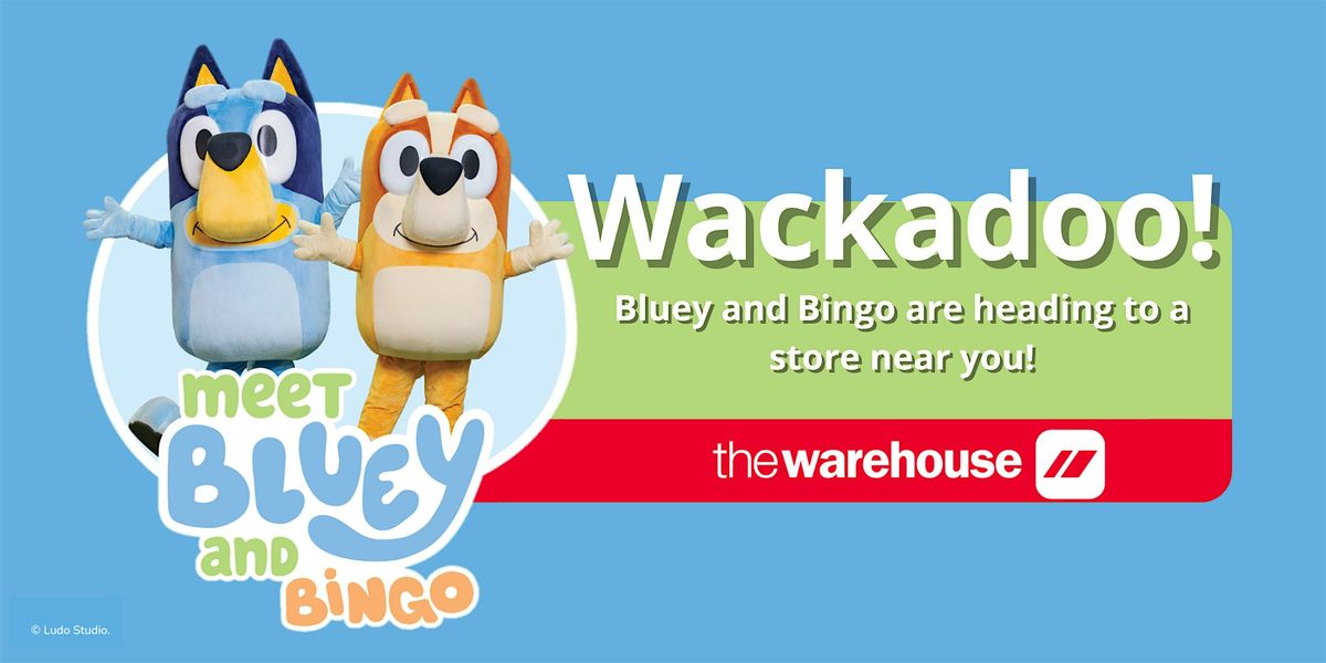 Wackadoo! Bluey and her little sister Bingo are heading to The Warehouse Manukau this April. For real life. Come and meet everyone’s favourite Heelers in person for smiles, photos and plenty of flossing of course!