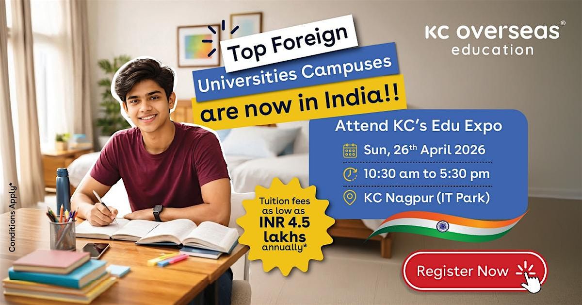 Join us for an exclusive International University Expo in Nagpur and meet 10+ globally ranked universities offering the same international degree, curriculum, and career opportunities right here in India. Get 1-on-1 counselling, free profile evaluation, scholarship insights (up to 50%), and on-the-spot application support - all under one roof.