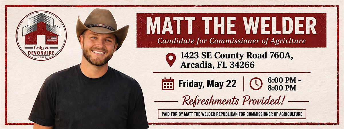 Come hang out with Matt and hear his plans and policies!