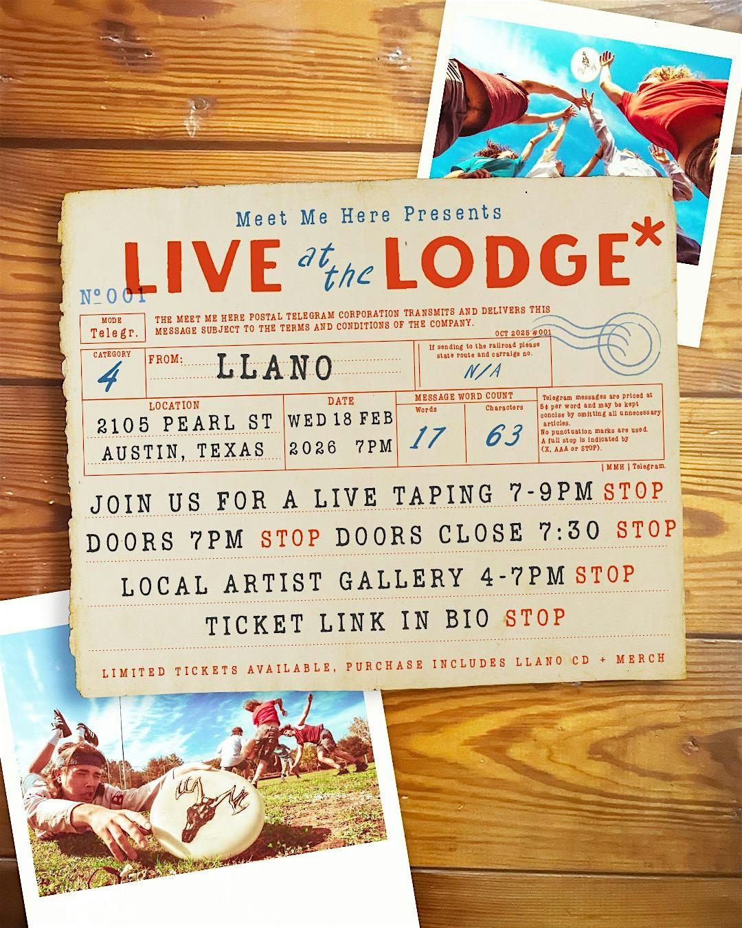 Tickets to the event include Meet Me Here merch, a Llano CD, and more.