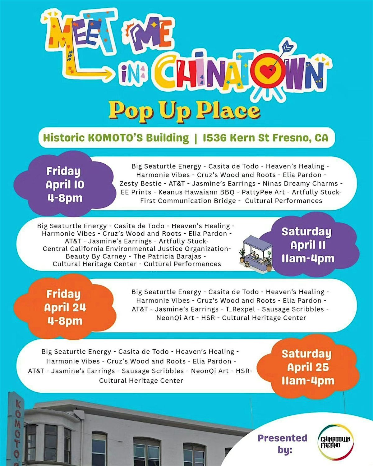 To highlight Fresno creativity in Chinatown through art, commerce, and community engagement.
