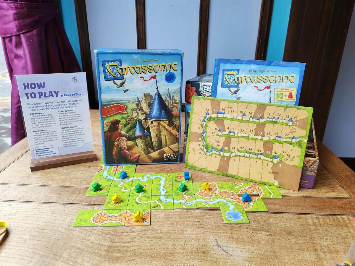 Players take turns placing tiles, adding to the map to complete cities and roads, scoring points as features are completed.