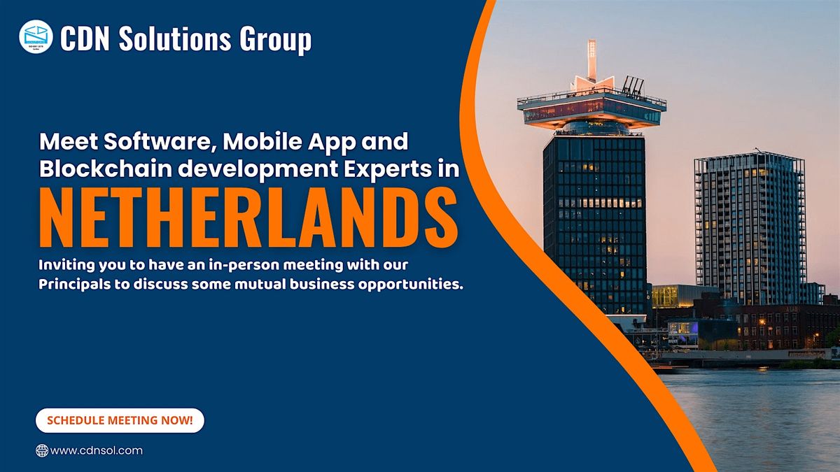 We are thrilled to announce that we will be embarking on a business trip to Amsterdam, the Netherlands. Our mission during this trip is to meet with different businesses and organizations to showcase our IT Solutions & Services (Blockchain, IoT, AI, AR/VR, Mobile app development, custom software solutions) and discuss potential partnerships and business opportunities.