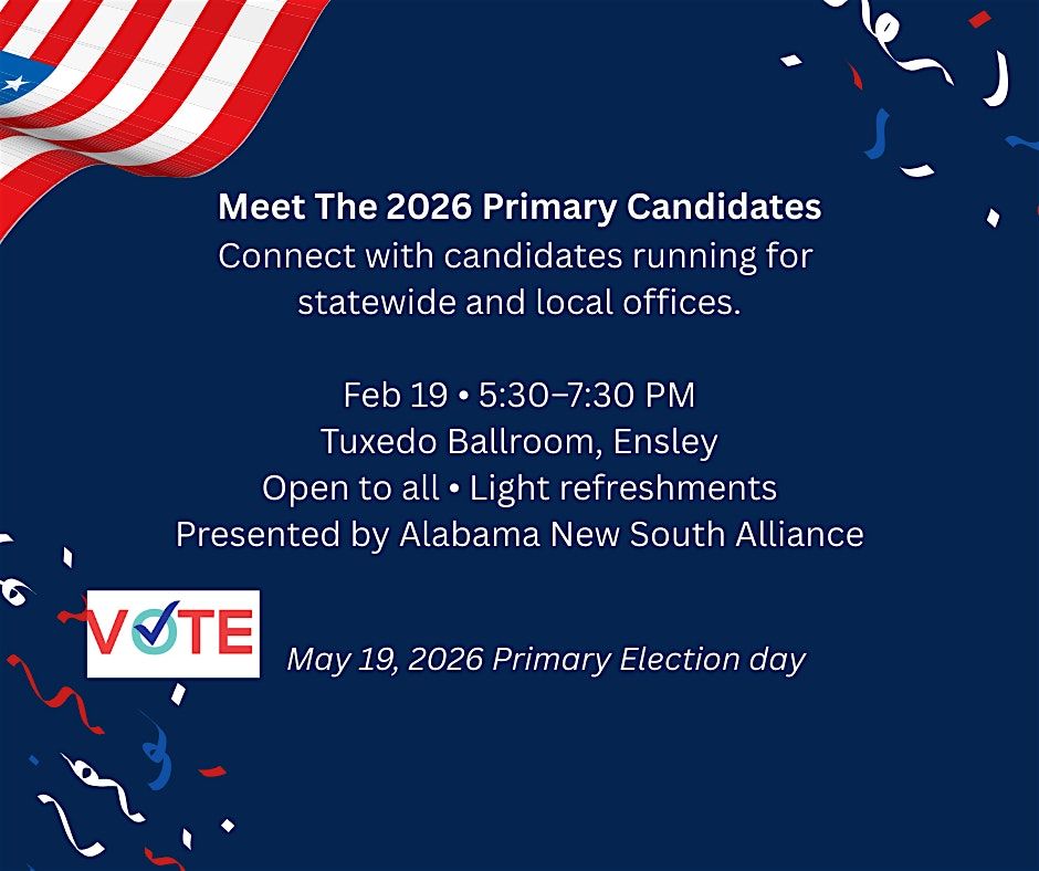 Come join us at the Tuxedo Ballroom on February 19, 2026 at 5:30 PM (Central Time) for an exciting event where you can meet the primary candidates for the upcoming election.
