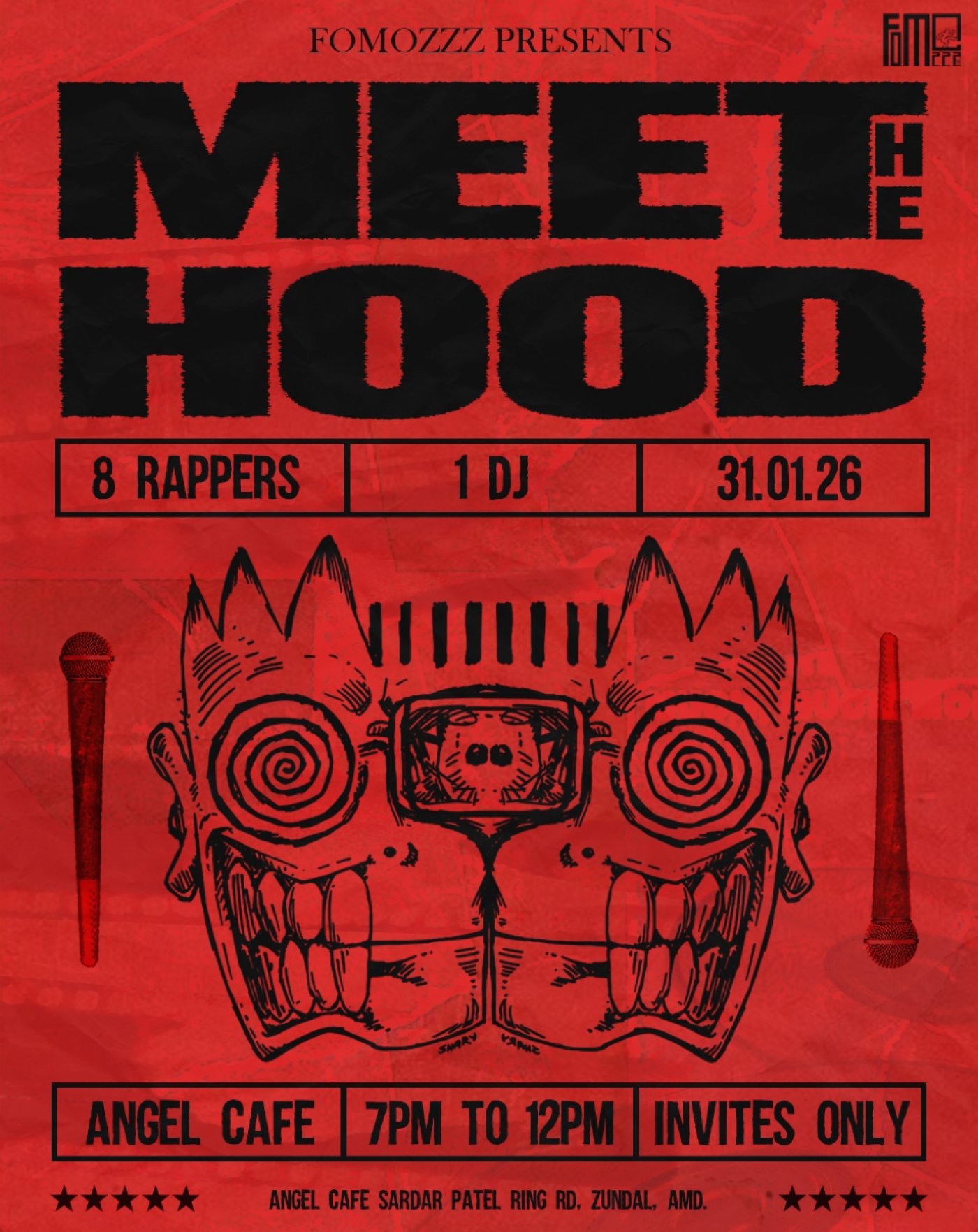 Ahmedabad’s finest rappers and a high-energy DJ come together for one unforgettable night of raw hip-hop, heavy beats, and pure crowd energy. Expect vibes, bars, and madness till late.
