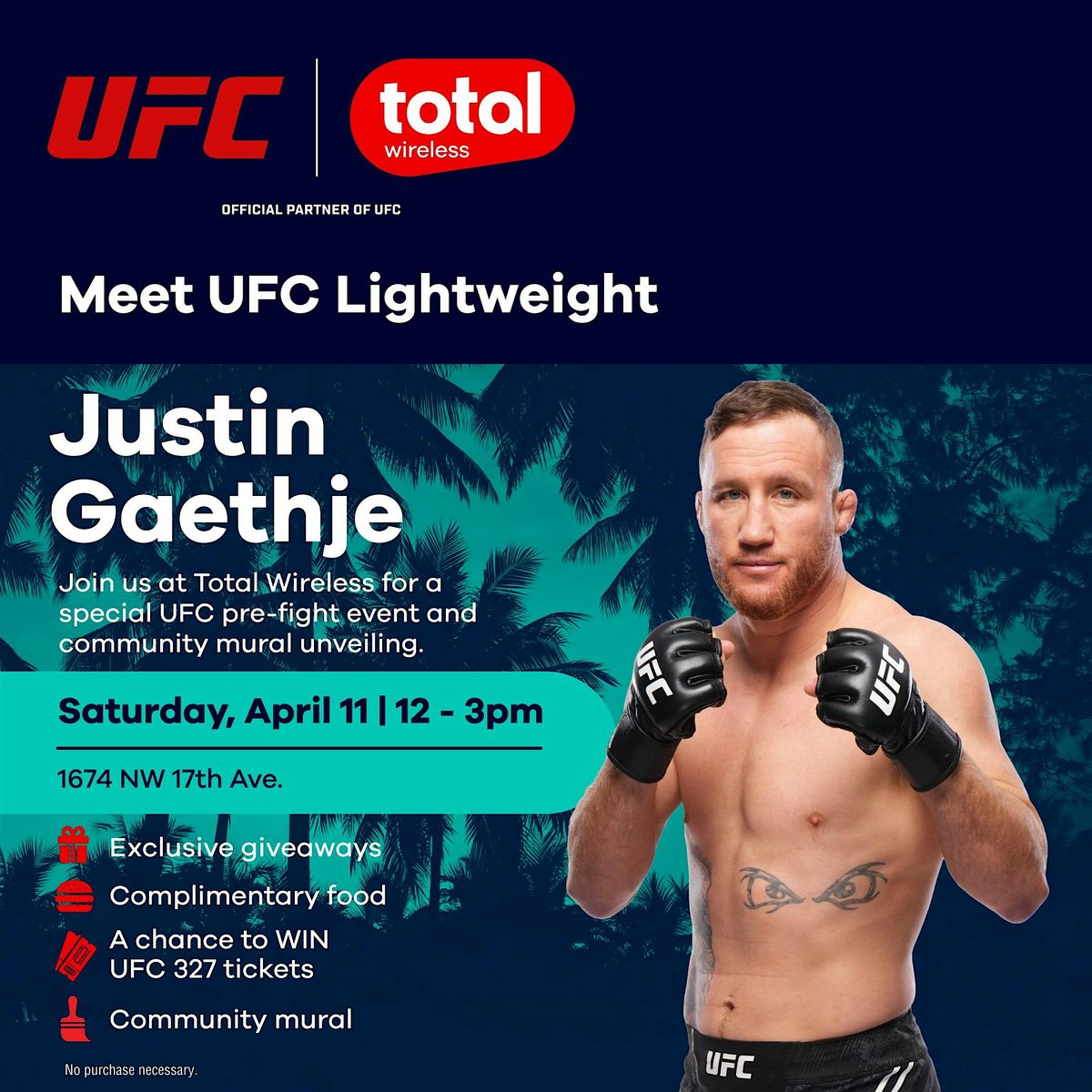 Don’t miss out! We are excited to see you there! #JustinGaethje #UFC #Totalwireless #UFC327