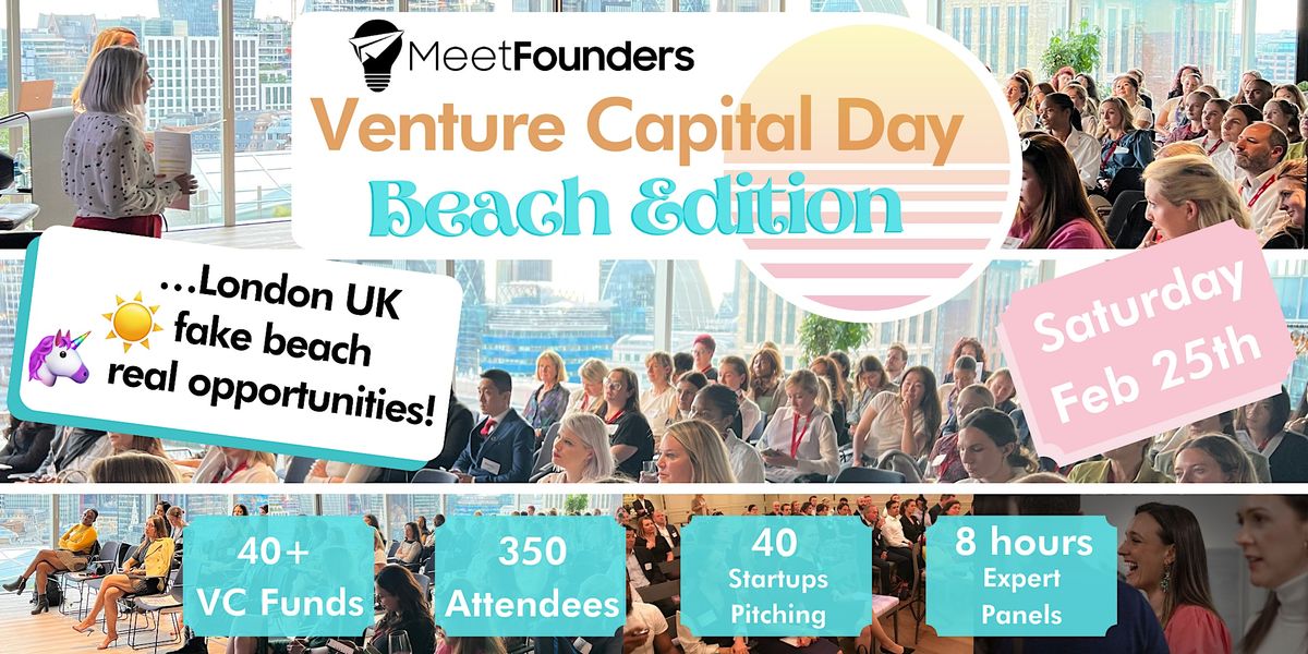 Surprise! Its not actually at the beach :-) This is a beach themed event, becuase we feel the startup and venture capital world could use a bit more fun! We'll have beachy prizes and beach balls, and encourage you to have a good time while meeting investors and high-growth startups.Key Highlights: 3 Conference Stages + Networking * 300 attendees! * 40+ VCs* 40 Startup Pitches