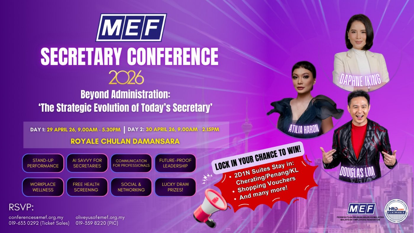 The MEF SECRETARY CONFERENCE 2026 - Beyond Administration: ‘The Strategic Evolution of Today’s Secretary’ is your gateway to sharpened skills, sharper judgment, and future‑ready confidence—all while connecting with industry peers and soaking in energising performances.