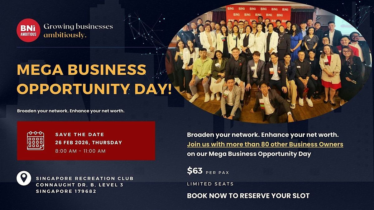 Calling all Singaporean business owners eager to amplify their client base! Join us for an electrifying event where you'll rub shoulders with over 100 dedicated entrepreneurs, seize the opportunity to showcase your business, and tap into a network primed to funnel referral opportunities your way.