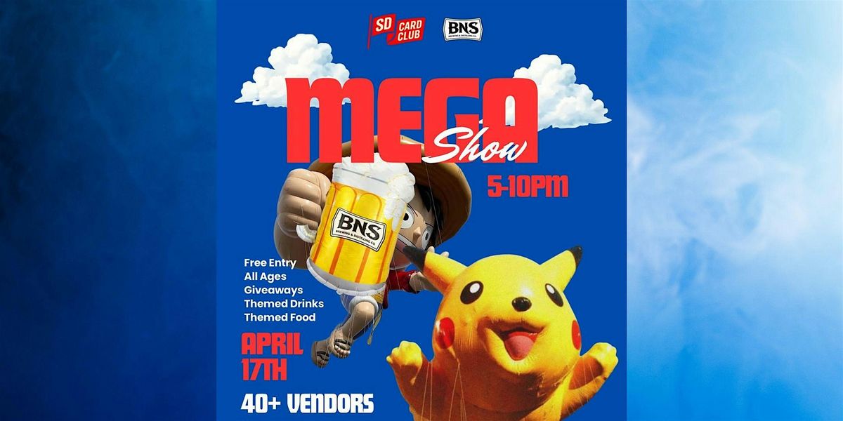 Join us for one of the largest trading card shows in San Diego—the SD Card Club Mega Card Show, happening at BNS Brewing & Distilling Co. on April 17th from 5PM–10PM.