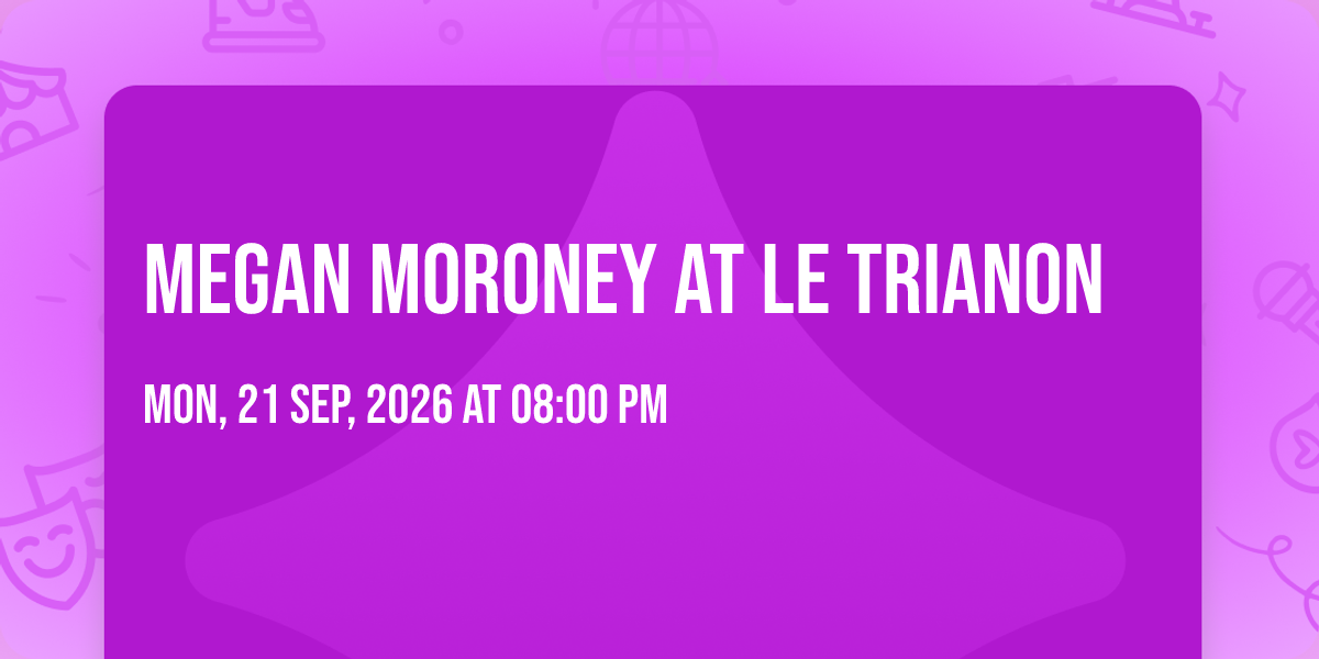 🎉 Welcome to Megan Moroney at Le Trianon, where dreams come alive and possibilities are endless! 🏛️ Join us at Le Trianon in the heart of Paris, IL for an event that defies expectations. 📅 On September 21st, 2026 at 08:00 PM, be part of something truly extraordinary as we bring together innovation, entertainment, and pure magic. ✨ Every aspect has been carefully designed to ensure an unforgettable experience for all our guests. Whether you're seeking adventure, inspiration, or simply a break from the ordinary, this event promises to deliver beyond your wildest dreams. 🎊 Prepare for a journey into the extraordinary!