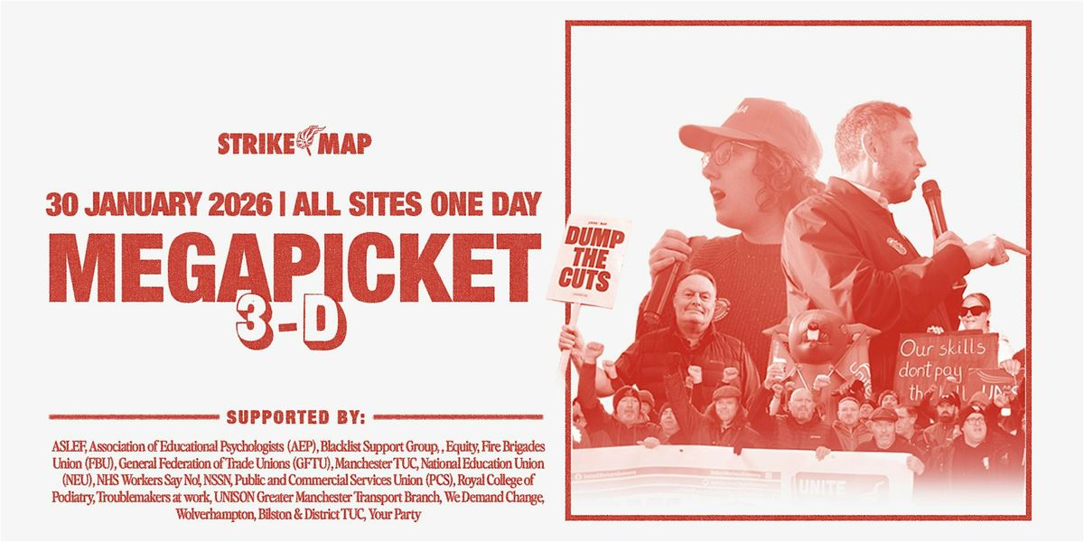 Alongside unions, campaign and community groups, Megapicket 3-D will organise across five sites on the same day.