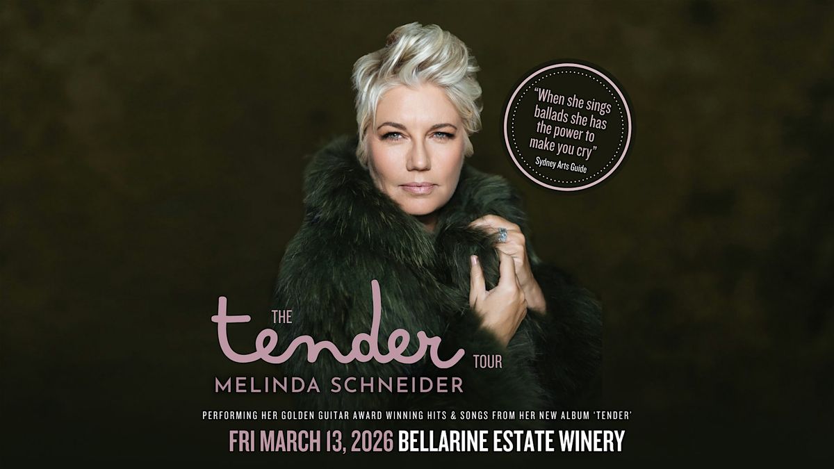 Acclaimed Golden Guitar-winning singer-songwriter Melinda Schneider is hitting the road this year to celebrate her highly anticipated album, Tender — her first original album in over a decade. Known for her heartfelt lyrics and soulful melodies, Schneider's new release marks a deeply personal and empowering return to her country music roots, embracing vulnerability, love, and resilience.