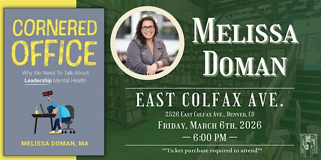 Join Organizational Psychologist, Melissa Doman, MA as we celebrate her new book about leadership mental health called, Cornered Office: Why We Need To Talk About Leadership Mental Health on Friday, March 6th at 6:00 PM at our Colfax location.