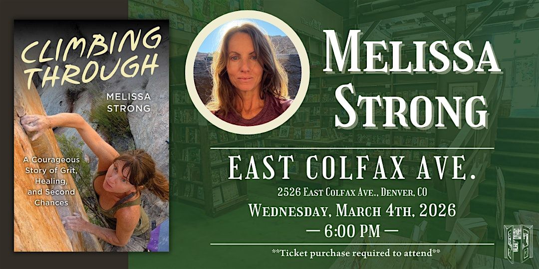 Join Melissa Strong, a sponsored rock climber and aspiring restaurateur, unveils her remarkable journey of survival and resilience through her new book, Climbing Through: A Courageous Story of Grit, Healing, and Second Chances on Wednesday, March 4th at 6:00 PM at our Colfax location.