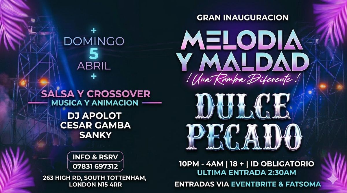 ¡La espera terminó! 🚨 Prepárate para una rumba de otro nivel en la Gran Inauguración de MELODIA Y MALDAD 😈🔥Este domingo 5 de abril nos tomamos Londres con lo mejor de la Salsa y el Crossover. ¡Una rumba diferente que no te puedes perder!