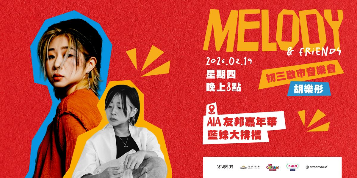 香港創作歌手 Melody 胡樂彤將於 2026年2月19日(年初三) 中環海濱 AIA 友邦 嘉年華「藍妹大排檔」 舉行《Melody & Friends 初三啟市音樂會》,與你一同熱 鬧迎接馬年啟市日!