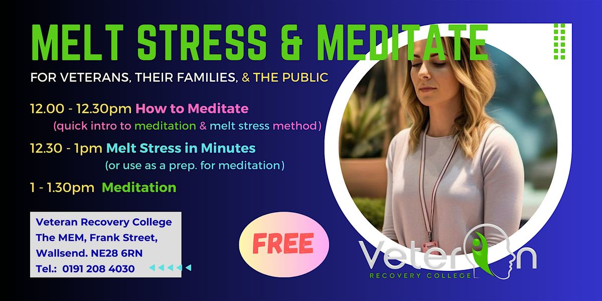 Melt Stress & Meditate is the perfect opportunity to relax and unwind. Join us at the Veteran Recovery College for a calming meditation session.