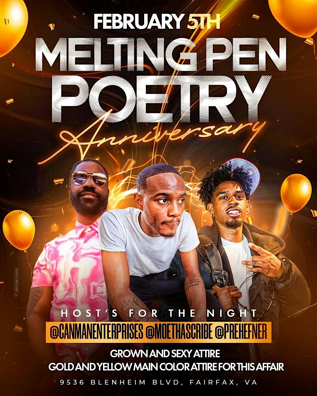 Welcome to the Melting Pen Poetry Anniversary! Join us on February 5, 2026 at 7:00 PM for a night filled with creativity and inspiration. This event will be held at a venue that will soon be announced.