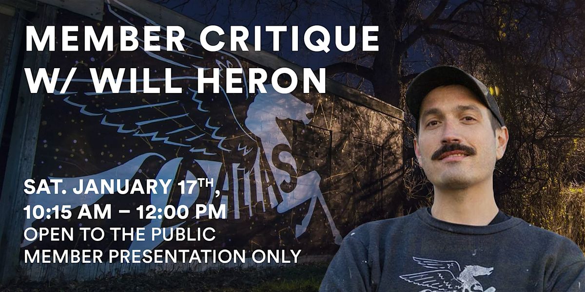 This monthly critique session will be moderated by Will Heron. During the course of the program, we will discuss the works of three talented artists from our community. Participate in an engaging and constructive discussion as we provide valuable feedback and insights to support the growth and development of their artistic practice. Critiques are a time to connect with fellow artists and gain new perspectives on art. Presenting is reserved for CU members only, though nonmembers are encouraged to attend and offer their unique insight