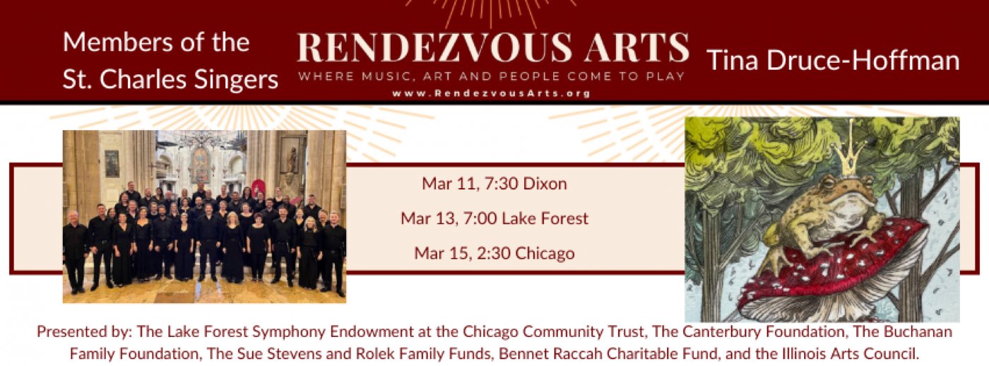 March brings a first for Rendezvous: a vocal ensemble. Eight extraordinary voices from the St. Charles Singers will fill the stage, led by conductor Jeff Hunt. This internationally touring choir has earned acclaim around the world, yet they remain rooted in the western suburbs. Now, they bring their artistry to Dixon, Lake Forest, and Chicago in a program that promises both power and intimacy.