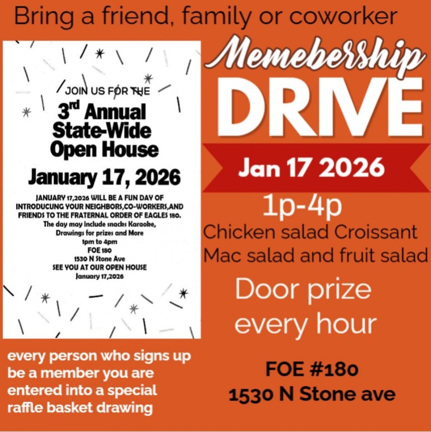 🎉 Join us for an unforgettable experience at the Membership Drive FOE 180 event, featuring the FOE OFFICERS as key speakers.
