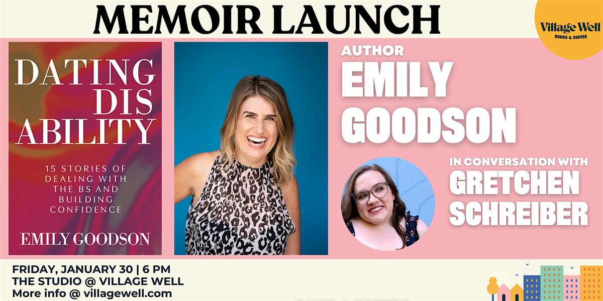 Join us at Village Well Books & Coffee for an intimate reading and conversation with author of Dating Disability: 15 Stories of Dealing with the BS and Building Confidence, Emily Goodson, about her debut memoir. Joining Emily in conversation is author Gretchen Schreiber. Emily will be available to sign copies and books will be available to purchase.