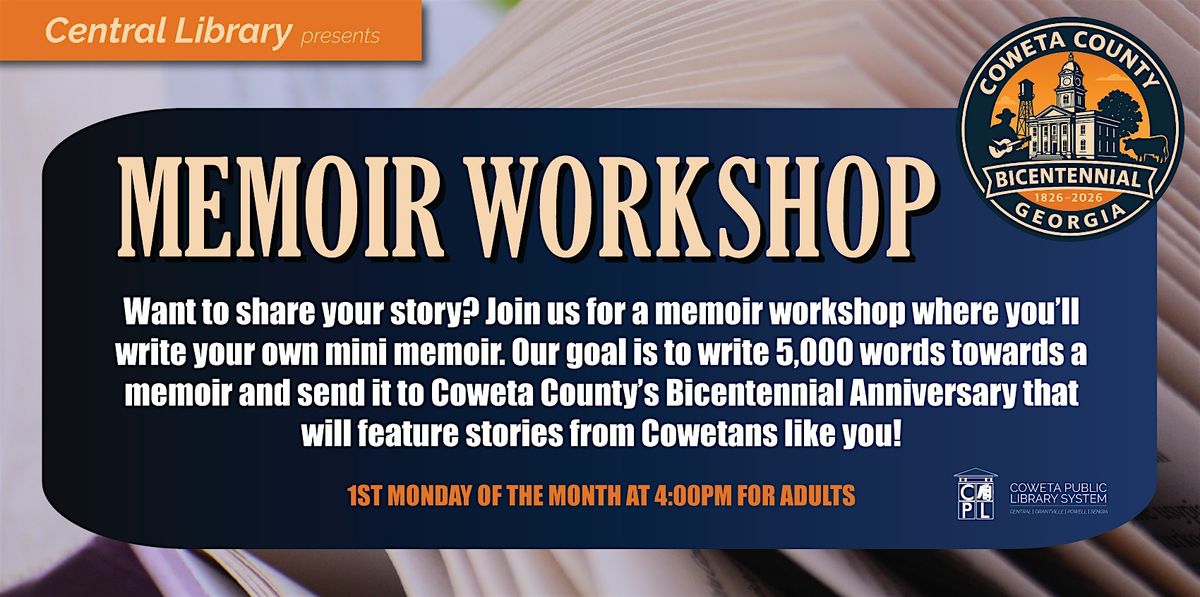 Our goal is to write 5000 words towards a memoir and send it to Coweta County’s bicentennial anniversary that will feature stories form Cowetans like you!