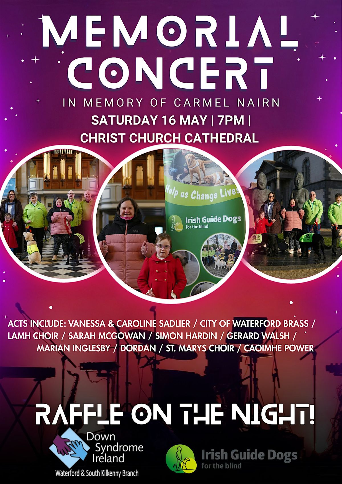 Memorial concert in memory of Carmel Nairn. All money raised goes to Down Syndrome Waterford & South Kilkenny and The Irish Guide Dogs, Waterford Viking Branch.