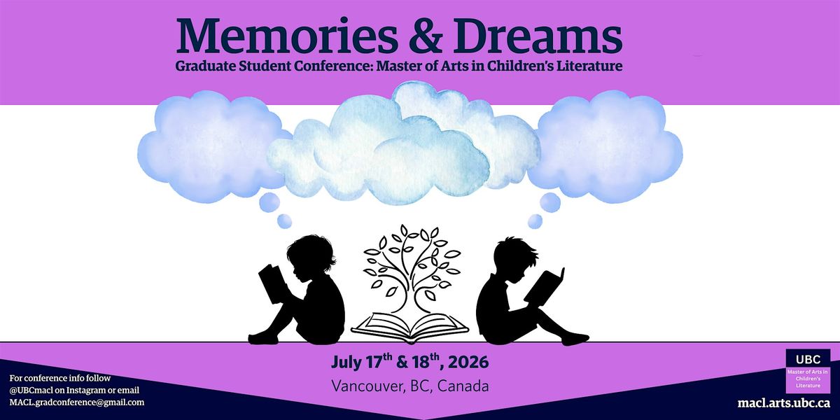 UBC’s 2026 Graduate Student Conference on children’s literature and media will explore how children’s texts engage with personal, cultural, ecological, and ancestral conceptions of memory and dream, and how they envision futures shaped by hope, uncertainty, and resistance. Our theme, Memories and Dreams, aims to explore how literature for children and young adults looks forward and backward, how it remembers, how it dreams, and how it helps young people make meaning in a world shaped by inherited histories and possible futures.