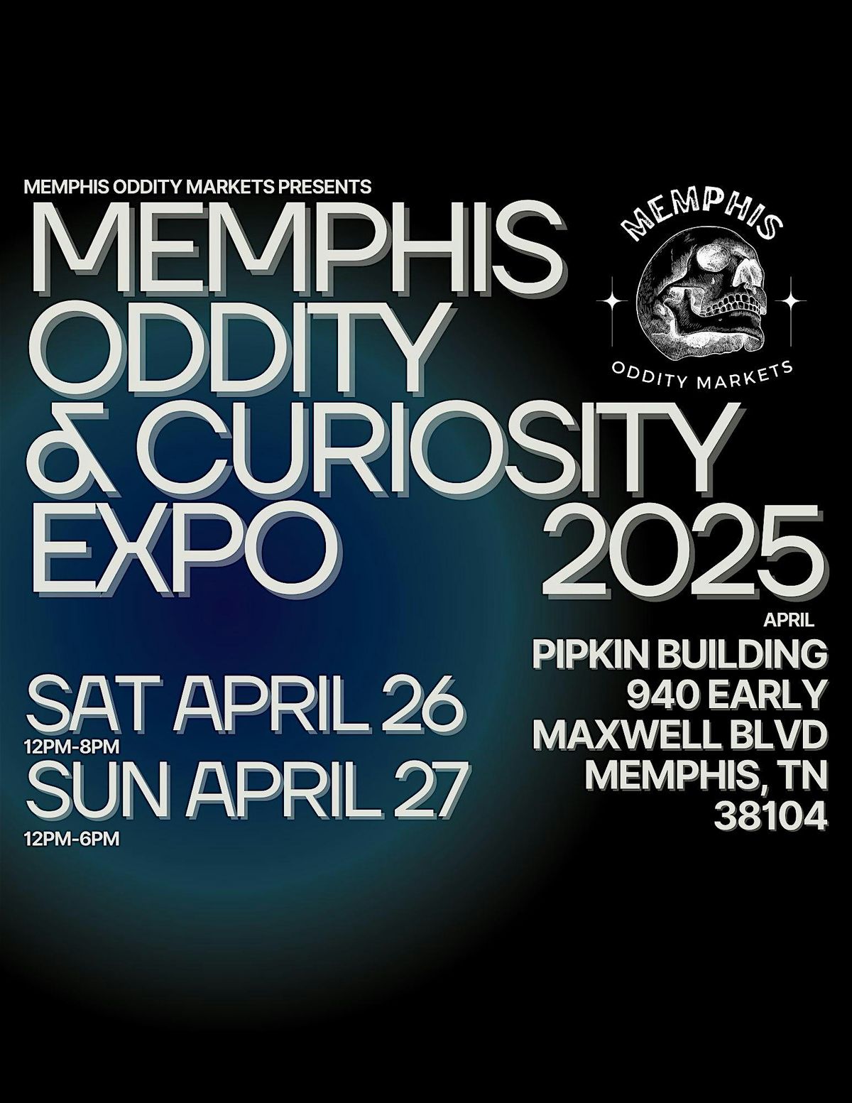 We invite you to join us for the 2025 Memphis Oddity and Curiosity Expo being held April 26 & 27 at the Pipkin Building in Memphis! This exposition brings together a variety of artists, creators, collectors, and small businesses who are all focused around oddities and macabre items. The expo's vendors sell a wide variety of items including macabre and spooky art, animal bones, wet specimens, jewelry, knitted items, stickers, candles, ritualistic items, ceramics, toys, antiques, taxidermy, and more!