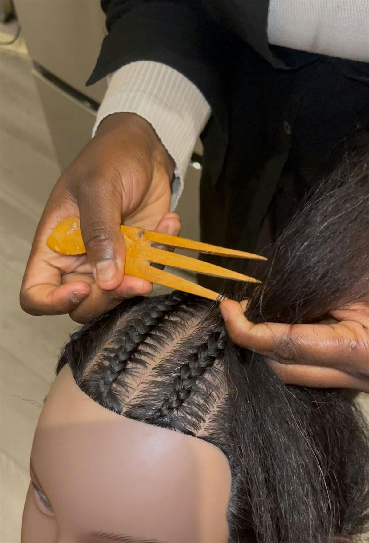 • Creating basic cornrows with clean finishes