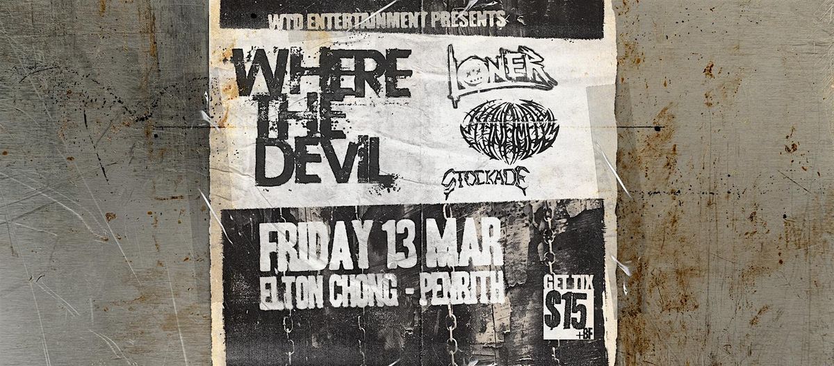 Descend into a night of booze and heavy metal at Elton Chong as Where The Devil, Loner, The Nameless and Stockade unleash crushing riffs, volume-soaked chaos and no-holds-barred live metal.