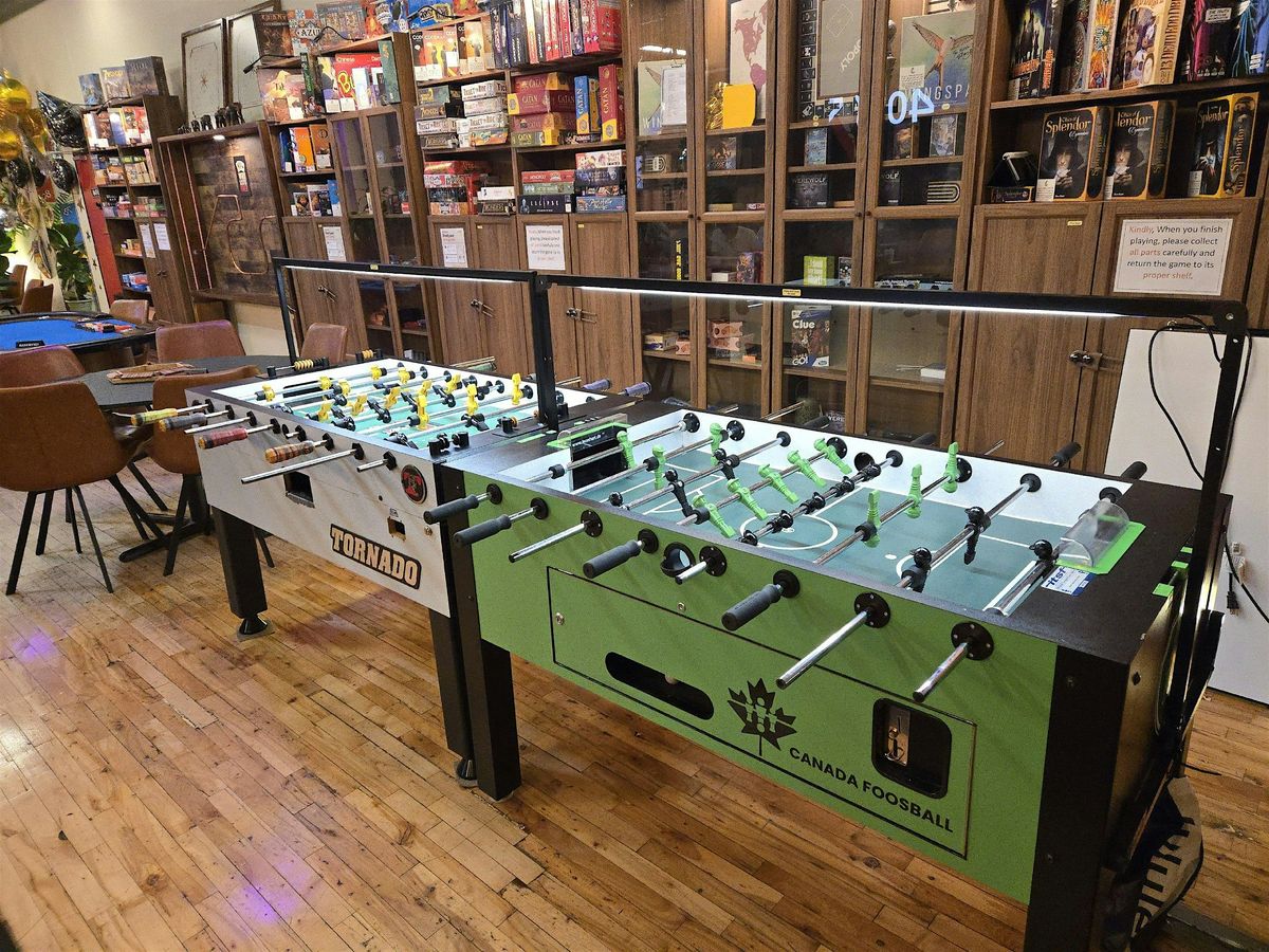 Join our two-player team Fossball competition, kicking off at 6:00 PM, with group stages and knockout rounds.
